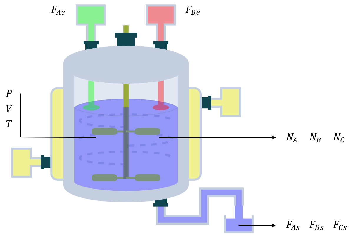 Vamos utilizar na nossa modelagem o exemplo que utilizamos na aula Conhecendo o Reator CSTR, da seção de introdução, para entender como um CSTR funciona.